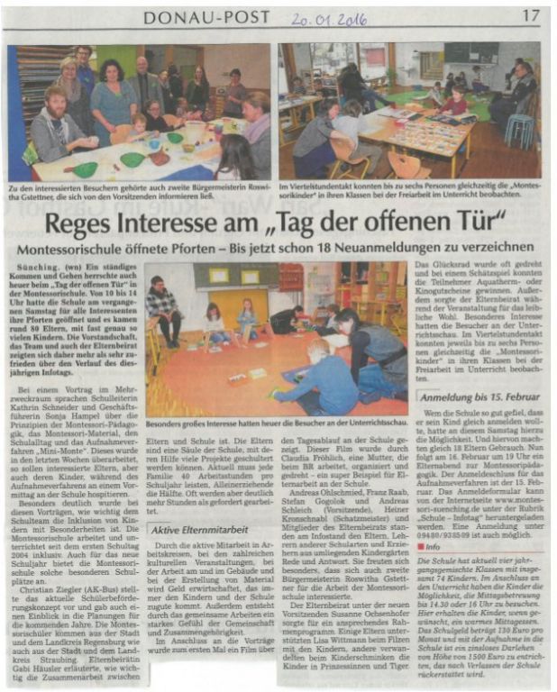 • Pressebericht vom 24.01.2020 - Montessori Schule in Sünching wächst